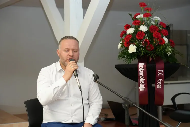 Günün anlam ve önemine dair konuşma yapan T.C. Essen Başkonsolosu Taylan Özgür Aydın, “Fethullahçı Terör Örgütünün 15 Temmuz 2016 akşamı, Türk Silahlı Kuvvetlerinin imkân ve kabiliyetlerini kendi kirli emelleri için kullanmak suretiyle seçilmiş Hükümetimize ve Gazi Meclisimize karşı gerçekleştirdiği hain darbe teşebbüsünün üzerinden 7 yıl geçti” dedi.