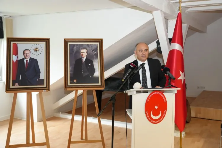 “100. yılını büyük bir coşku ve sevinçle kutlayacağımız Cumhuriyetimizin ve İstiklalimizin hiçbir örgüt veya oluşumlar tarafından ipotek altına alınmasına izin vermeden, tam bağımsız Türkiye için mücadelemizi sürdüreceğiz.” diyen Başkonsolos Aydın konuşmasını şöyle tamamladı: “100 yıl önce 7 cihana direnen atalarımıza bunu borç biliyoruz. Bu duygu ve düşüncelerle başta Cumhuriyetimizin kurucusu Gazi Mustafa Kemal Atatürk’ü ve aziz şehitlerimizi rahmet ve minnetle yad ediyor, Türkiye Yüzyılı gazilerine şükranlarımı sunuyorum.”
