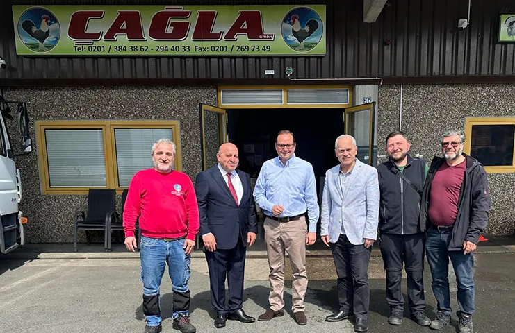 Essen Büyük Şehir Belediye Başkanı Thomas Kufen, Großmarkt Essen'de faaliyet gösteren Çağla Tavukçuluk firmasına nezaket ziyaretinde bulundu. Kufen'i, Çağla Tavukçuluk Pazarlama Müdürü Muharrem Uslubaş ve Finans Müdürü İsmet Karaöz karşıladı.