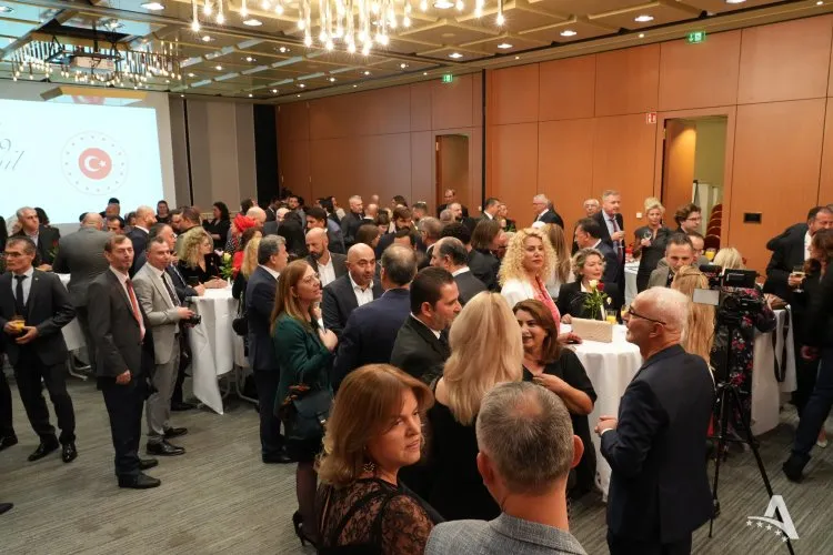Türk ve Alman milli marşlarından sonra Türkiye Cumhuriyeti Cumhurbaşkanı Recep Tayyip Erdoğan’ın Cumhuriyet Bayramı mesajı Başkonsolos Sezai Tolga Şimşir tarafından okundu.