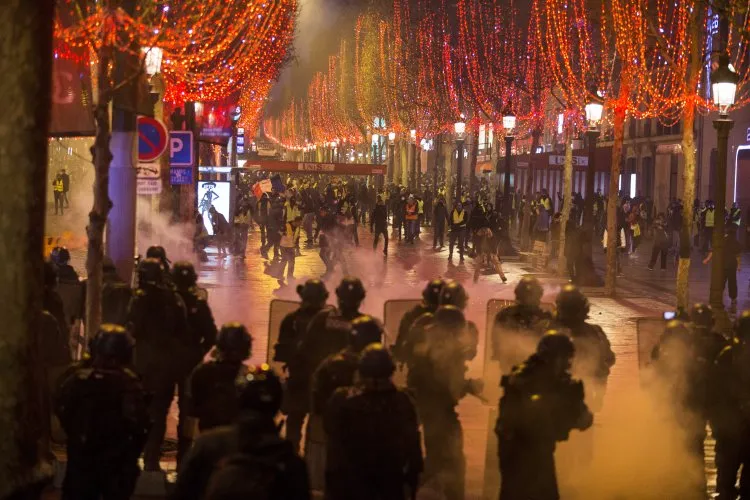 Champs-Elysees ve çevresinde 1 Aralık'ta düzenlenen ve binlerce kişinin katıldığı gösteride polisin eylemcilere sert müdahalesi, sokaklarda araçların ve çöp bidonlarının yakılması, iş yerlerinin yağmalanması, sık aralıklarla ses bombalarının patlatılması ve alevlerin yükselmesi, kenti "kaosa" sürüklemişti.