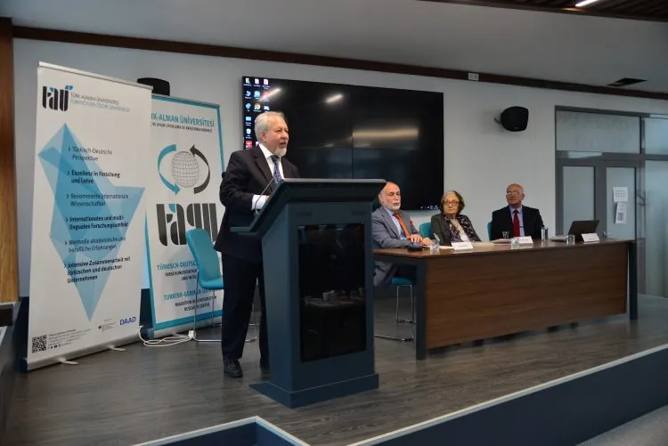 Türk-Alman Üniversitesi'nde yapılan etkinliğin açış konusmasını yapan Rektör Prof. Dr. Cemal Yıldız, “Üniversitemiz göçün devletlerarası ilişkileri güçlendirmesinden doğan bir eğitim kurumudur” şeklinde konuşarak Almanya’ya göçün diplomatik ve sosyo-ekonomik boyutlarına dikkat çekti.