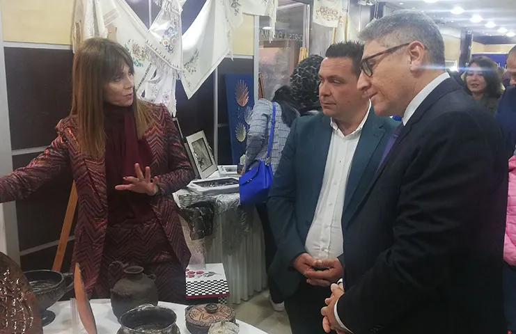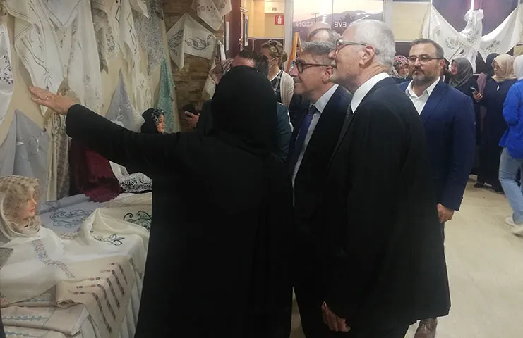Konuşmaların ardından Başkonsolos Ömeroğlu ve katılımcılar dikiş, nakış, el sanatları, seramik, quilling ve ebru çalışmalarının sergilendiği stantları gezerek kurs eğitmenlerinden çalışmalarla ilgili bilgiler aldı..