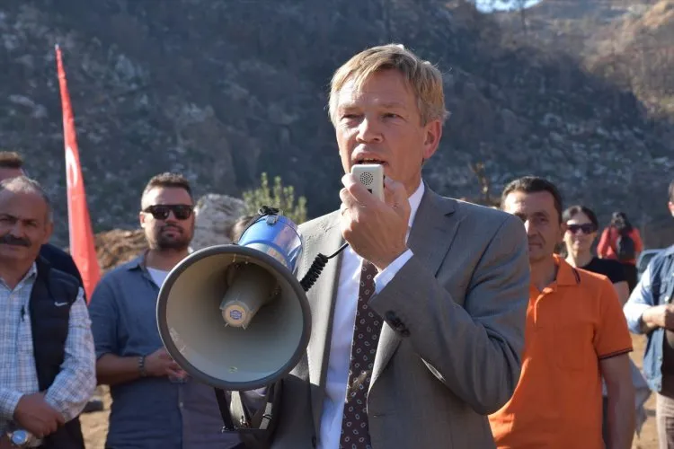 "Marmaris halkının yalnız olmadığını göstermek için bugün bu güzel ortamda Hollanda-Türkiye ormanının ilk fidanlarını dikiyoruz.