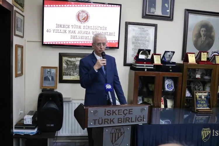 “Yunanistan’da misafir değil mukim olan Batı Trakya Türk Azınlığının ilk sivil toplum kuruluşu olma özelliğine sahip bu birliğin duvarları çok köklü bir tarihi yansıtıyor. 90 yıla neler sığmamış. Belgeselde gördük, daha önceki faaliyetlerde gördük, etrafımıza baktığımızda görüyoruz. İTB’nin bu hak arama mücadelesinin üzerinden 40 yıl geçti. Bu hak arama mücadelesi takdire şayan ve haklı mücadelenizin de daima yanınızdayız. Ben burada bu kalabalığa baktığımda, Batı Trakya’da soydaşlarımıza baktığımda Türk görüyorum. Öte yandan tehdit de görmüyorum. Objektif kriterlerle bakıldığında aslında kararın gerekçesi geçersiz. Burada yaşayan kardeşlerimizin sıkıntıları bütün Türkiye’nin takibinde. AİHM’nin derneği haklı bulduğu kararlarının da takipçisi olmayı sürdürüyoruz uluslararası platformlarda. Türk toplumunun kültürünü, kimliğini ve değerlerini yaşatma, geliştirme ve gelecek nesillere aktarmaya yönelik faaliyetleriniz bizim açımızdan da sizin açınızdan da önemli. Burada önemli olan gelecek nesilleri yetiştirmek. Yetiştirmenin yanı sıra tarihi öğretmek, haklarını ve hukuklarını öğretmek aslında doğası gereği ayrıcalık olması gereken azınlık bilincini yerleştirmek ve aynı zamanda mücadele bilincini de aşılamak.