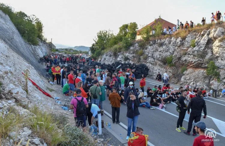 Karadağ'ın farklı şehirlerinden gelen vatandaşlar, Sırp Ortodoks Kilisesi Patriği Porfirije ve diğer kilise yetkililerinin tahta çıkış törenine gelişini engellemek amacıyla Cetinje şehrine girişleri kapattı.