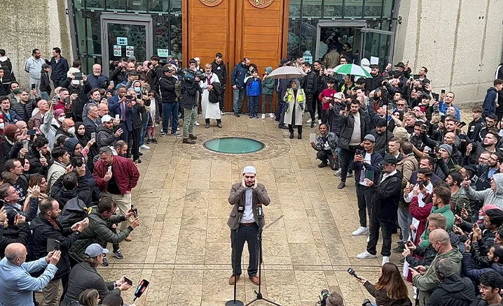 Köln Merkez Camii’nde ilk öğle ezanı 14 Ekim Cuma günü din görevlisi Mustafa Kader tarafından okundu.