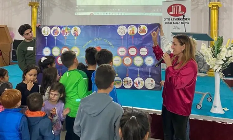 Leverkusen DİTİB Mimar Sinan Camii gençlik kolunun organizasyonuyla gerçekleşen etkinlikte, Şakrak karakterinin mucidi ve proje geliştiricisi Ayşe Gül Kara Zorlu, çocuklar, gençler ve aileleriyle bir araya geldi.
