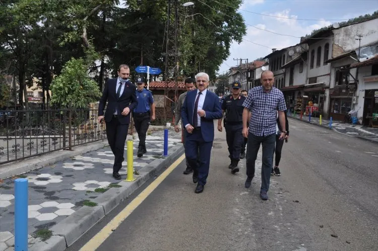 Bolu Valisi Erkan Kılıç da ilçeye gelerek Kaymakam Fatih Çevik ile ilçe merkezi ve köylerde taşkın ve selden etkilenen alanları inceledi.