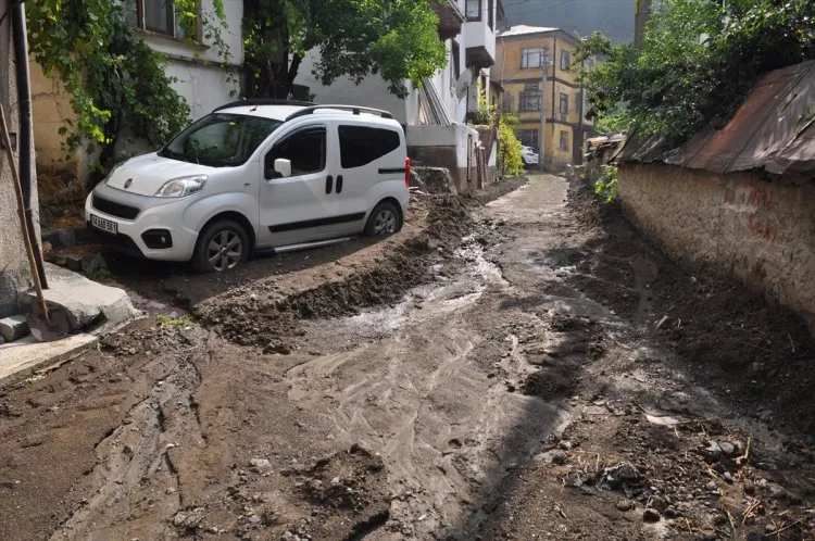 Kuvvetli yağış ve fırtına sebebiyle bazı ağaçlar kırılarak araçların üzerine düşerken, ilçe merkezindeki yamaçlardan kopan kayalar ise cadde ve sokaklara yığıldı.