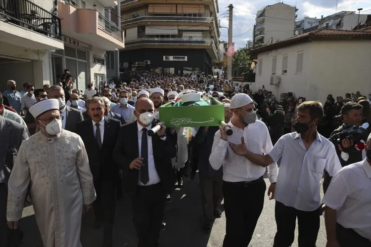 Mete'nin tabutu, binlerce Batı Trakyalı Türk'ün eşliğinde omuzlar üzerinde taşınarak 2007'den beri görev yaptığı İskeçe Müftülüğüne getirildi.