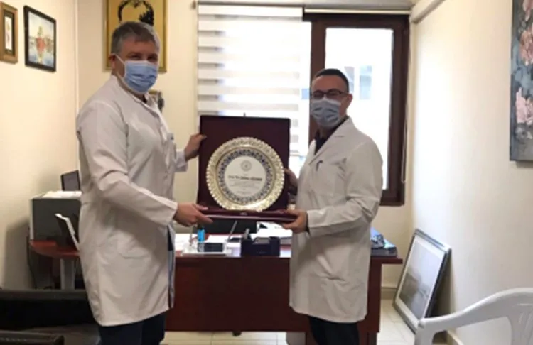 Yüksekokul Müdürü Doç. Dr. Serhat Hüseyin bugüne kadar Keşan Hakkı Yörük Sağlık Yüksekokulu'nda yaptığı çalışmalar ve hizmetlerinden dolayı Doç. Dr. Hakan Akdere'ye teşekkür ederek plaket takdim ettiler.
