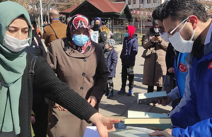 Kur’an-ı Kerim ve Safahat dağıtımına programa katılanlar ve Taceddin Dergahını ziyaret eden vatandaşlar yoğun ilgi gösterdi.