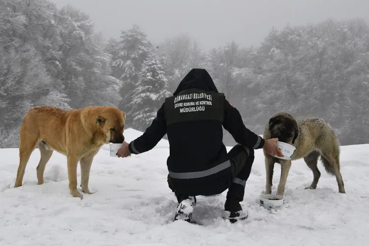Osmangazi Belediyesi Çevre Koruma ve Kontrol Müdürlüğü ekipleri, kar dolayısıyla yiyecek bulmakta zorlanan köpekleri de elleriyle besledi. Oteller bölgesine kadar çıkan ve yol üzerinde Osmangazi Belediyesi tarafından yerleştirilen beş farklı noktadaki beslenme odaklarına kuru mama bırakan ekipler, yol boyunca gördükleri köpekleri de besledi.