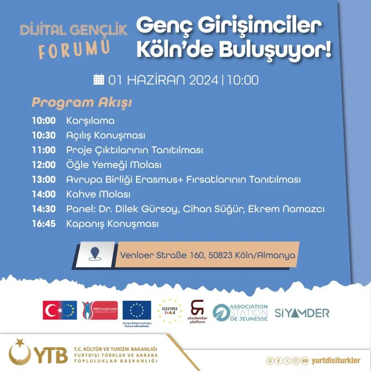 Yurtdışı Türkler ve Akraba Topluluklar Başkanlığı (YTB) ve Türkiye Ulusal Ajansı iş birliğiyle Köln’de “Genç Girişimcileri” buluşturuyor.